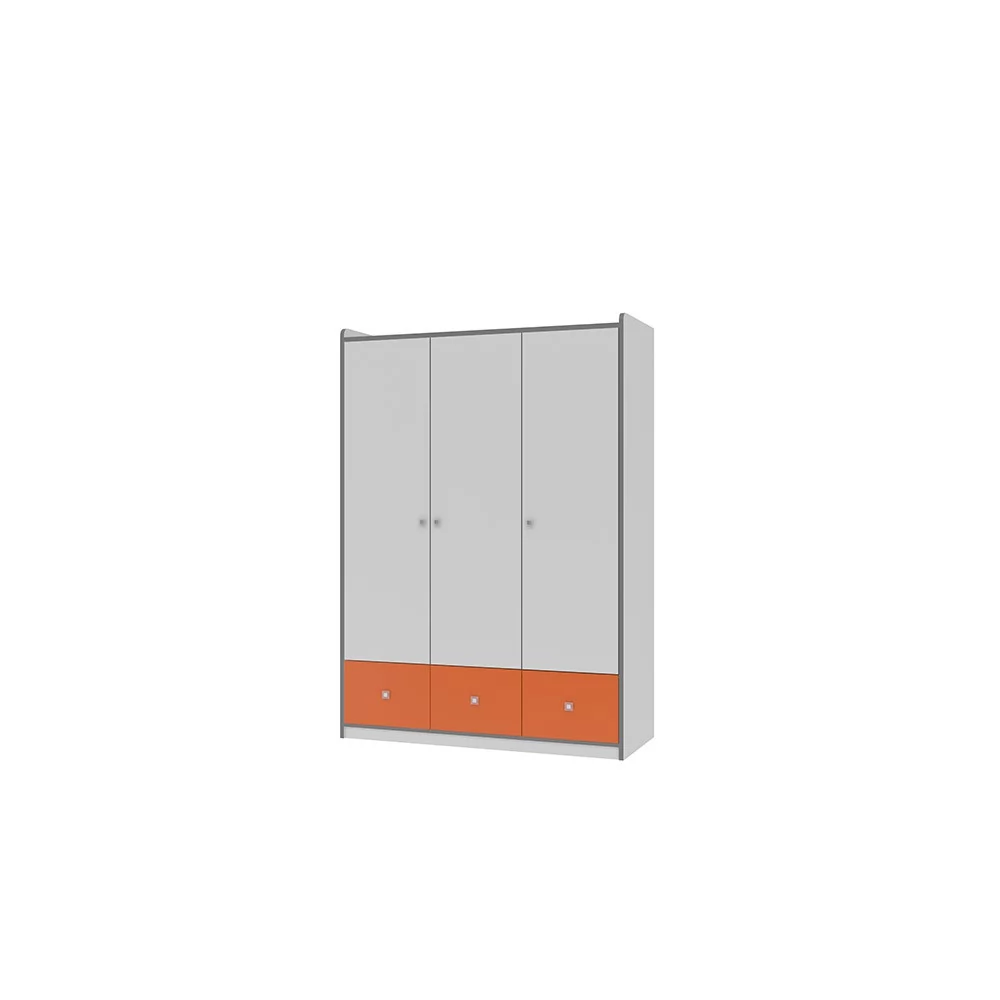 Трехстворчатый шкаф "Дельта-9.1 Сильвер" предназначен для одежды и других вещей ребенка. Верхняя часть шкафа разделена на 2 отделения. Большее отделение комплектуется штангой и антресольной полкой, меньшее - полками. Снизу шкаф оборудован тремя выдвижными ящиками.
