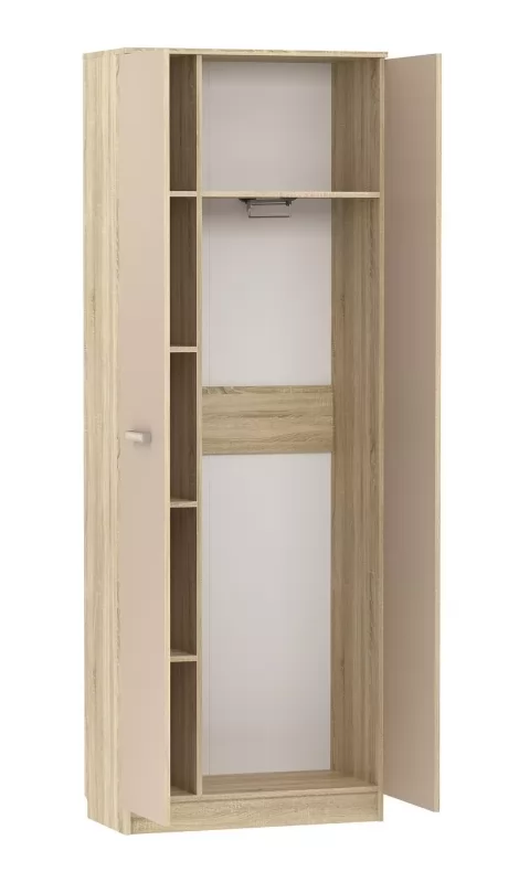 Внутри модуля предусмотрены выдвижная штанга для одежды на вешалках. Компактная, но очень вместительная модель шкафа с пятью полками, позволит разместить вещи и игрушки. Классические глухие фасады надежно защитят содержимое шкафа от влаги и пыли.