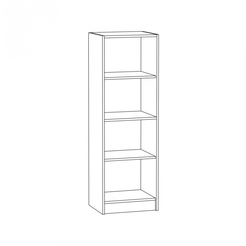 Стеллаж из модульной серии "Альфа" включает в себя отделение с глухой распашной дверцей и две открытые полки.