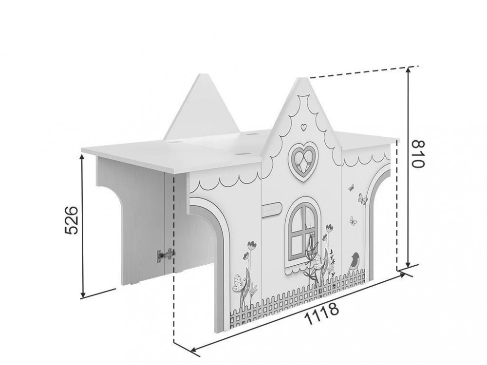 • с двумя разложенными столешницами: 810 х 600 х 1118 мм.