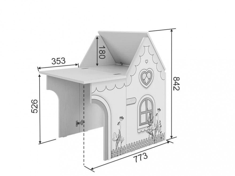 • с одной разложенной столешницей: 842 х 600 х 773 мм.