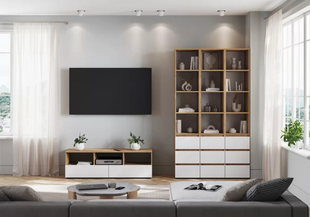 1. Тумба ТВ Хелен ТБ 02 белый/дуб крафт золотой