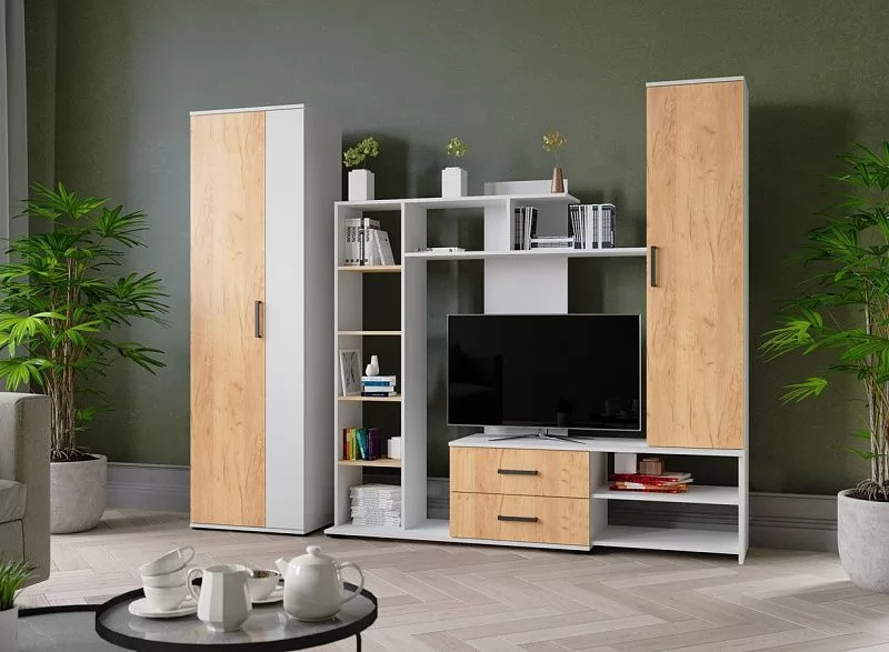 • Вариант 3: Корпус ЛДСП Белый с тиснением «Древесные поры», Фасад ЛДСП Белый с тиснением «Древесные поры», ЛДСП Дуб Крафт Золотой