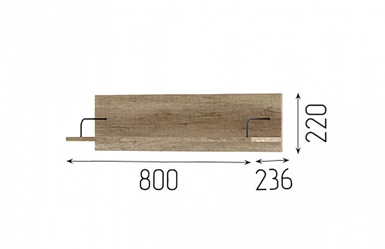 Высота, мм-220Ширина, мм-800Глубина, мм-236Вес, кг-4.1Расположение-НавесноеМатериал корпуса-ЛДСПЦвет корпуса-Дуб каньонКоличество полок-1