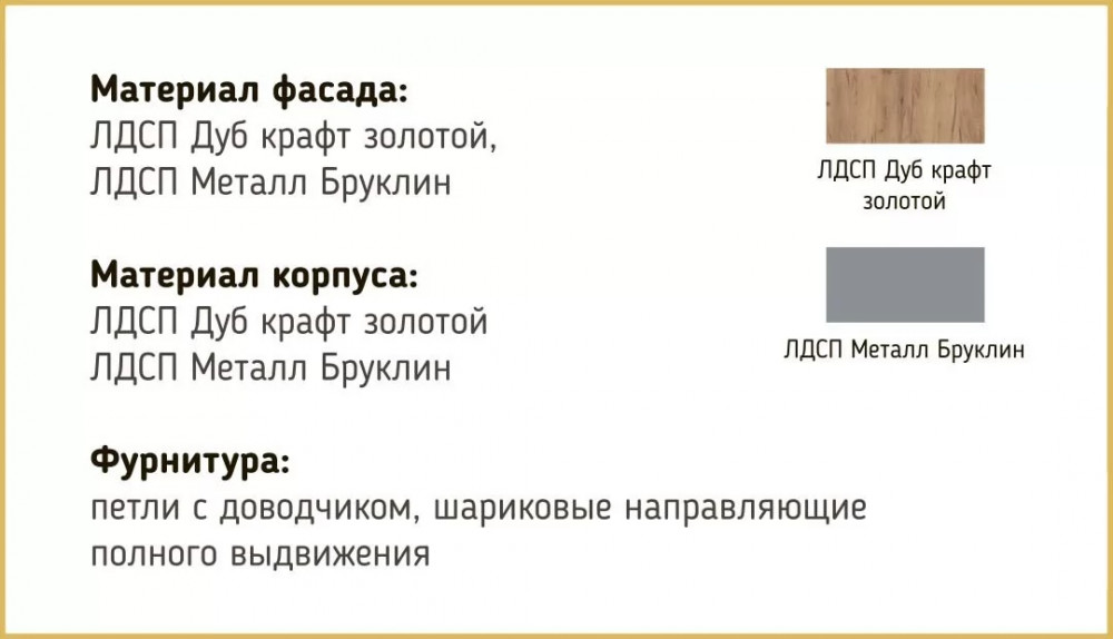 Цвет:Дуб крафт золотой/Металл Бруклин