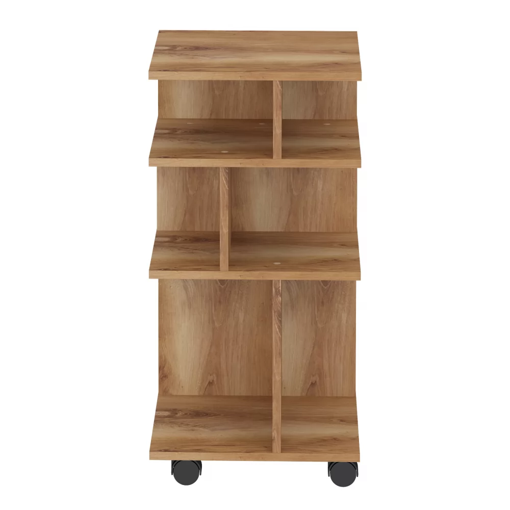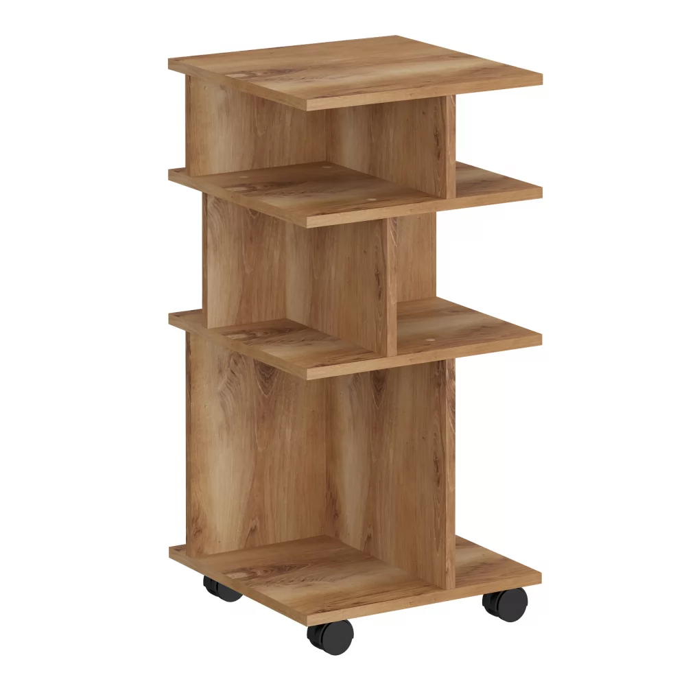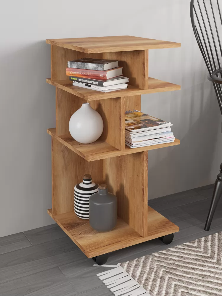 Оригинальная мобильная полка для организации рабочего места - можно перекатить туда, где она нужна, повернуть удобной стороной, а разные размеры полок позволят практично разместить необходимые предметы.