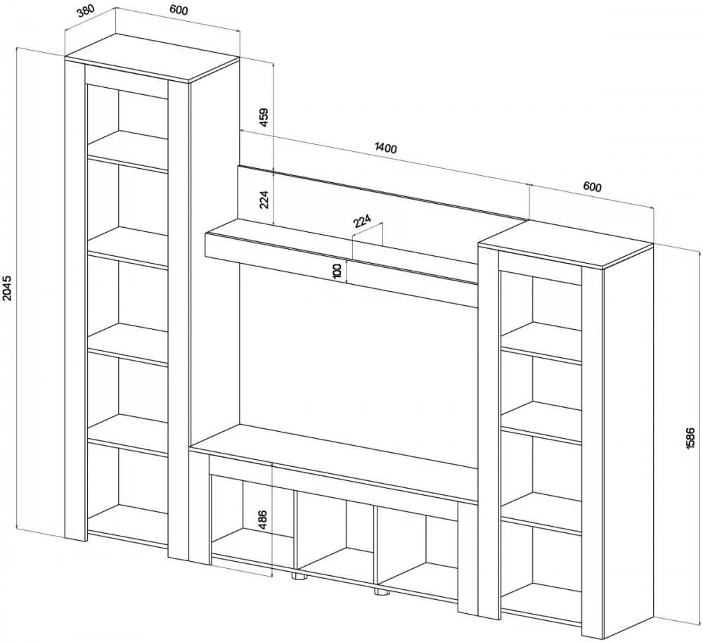 • Габариты: 2600 (ширина) х 380 (глубина) х 2045 (высота) мм.