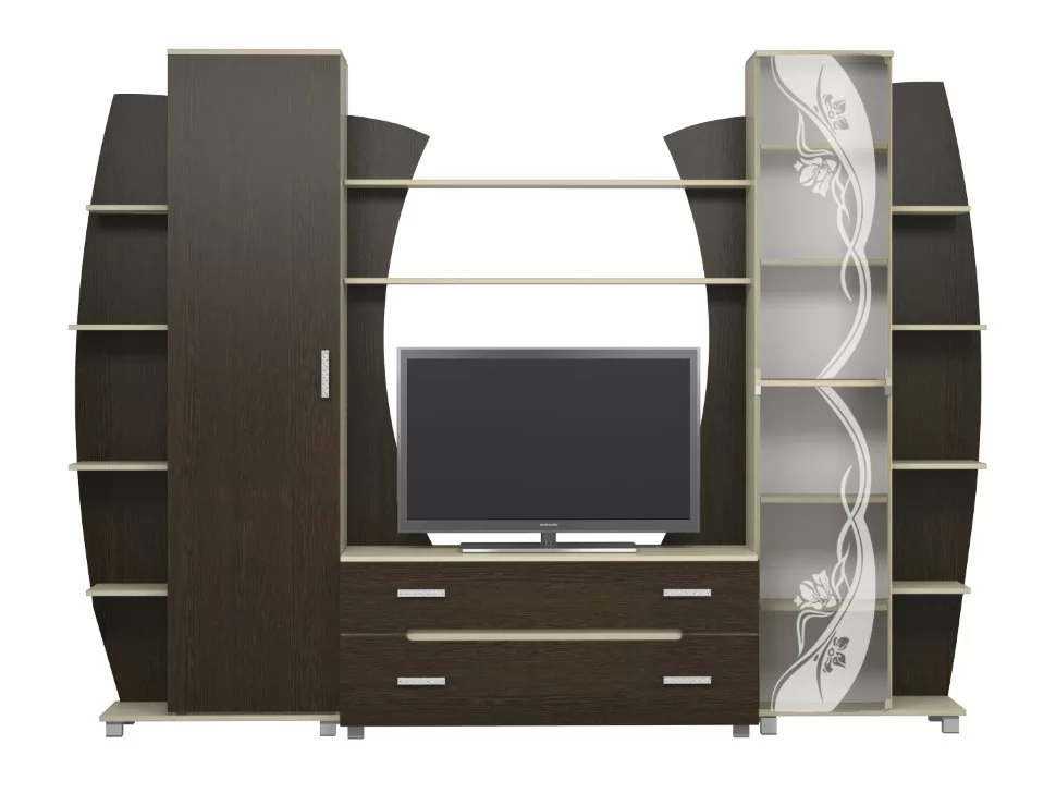 Оригинальная гостиная Тиана станет стильным и практичным элементом в интерьере. Округлые линии в сочетании с изящным рисунком придают модели особый шарм и создают уютную атмосферу, идеальную для отдыха в кругу семьи.