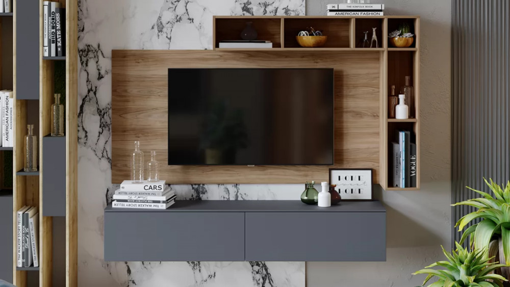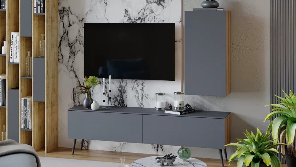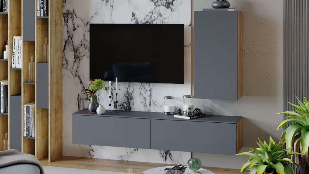 Модульная гостиная «Порто» Яблоня Беллуно, Графит софт в Кургане
