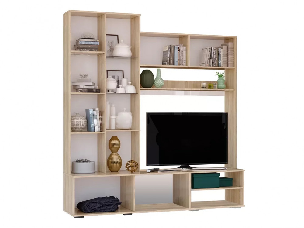 - нестандартное расположение открытых полок придает гостиной Флай невесомости и делает ее очень стильной.