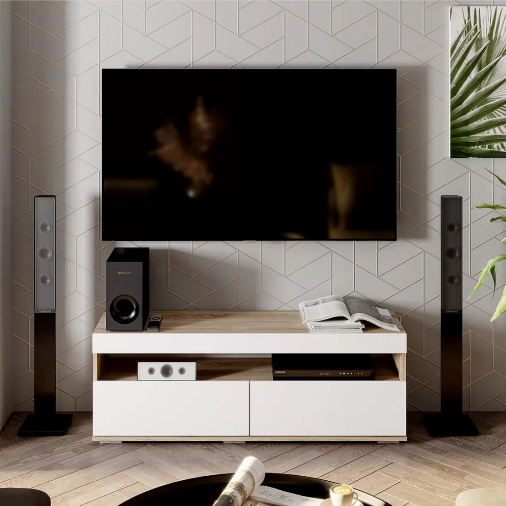 Практичное и функциональное решение для Вашей гостиной или спальни в современном стиле. Сочетание белого фасада и корпуса цвета дуб сонома, отсутствие лицевой фурнитуры делают модель лёгкой, а интерьер уютным и свежим. Верхняя открытая полка прекрасно подойдёт для хранения медиа техники. Вместительные выдвижные ящики на шариковых направляющих выдерживают нагрузку до 10 кг, обеспечивают легкую и бесшумную эксплуатацию. Благодаря регулируемым опорам тумбу можно устанавливать даже на неровную поверхность. Лучший выбор — это Тумба под ТВ Белладжио ТБ-29 в компании «Семья Мебелони».