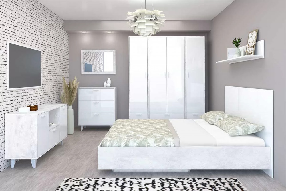 Цвет:бетон светлый/белый глянец
