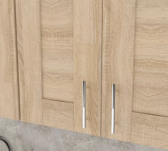 Кухонный гарнитур Ника медиум из ЛДСП в модном цвете "Квадро дуб сонома" впишется в современный дизайн интерьера. Подойдет как для частного дома, так и для небольшой квартиры. Напольные и подвесные шкафы позволят разместить всю кухонную утварь. Гарнитур состоит из набора шкафов, которые органично комбинируются между собой. Ящики, полки, навесные шкафы, тумбы и пеналы можно менять местами, создавая практичное рабочее пространство.