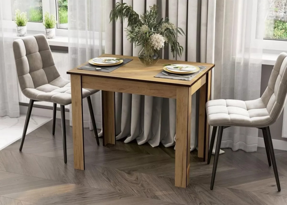 Размеры (мм):ширина - 900,глубина - 600,высота - 740.Материалы: ЛДСП.Цвет: Дуб Золотой.Технические характеристики:Нераскладной кухонный стол с прямоугольной столешницей.Имитация текстуры древесины.Рассчитан на 4 человек.Надежная столешница, устойчивая к воздействию внешней среды.Прочные полые опоры.Объем: 0,025 м3.Производство: Россия.Вес: 14 кг.