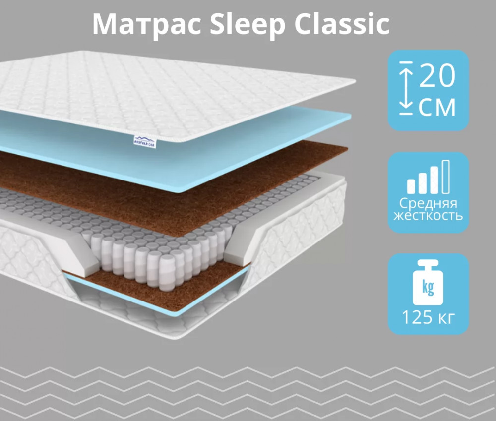 Матрас Sleep Classic - это удобное и поддерживающее изделие, разработанное с использованием разнообразных материалов для обеспечения комфорта и поддержки во время сна.
