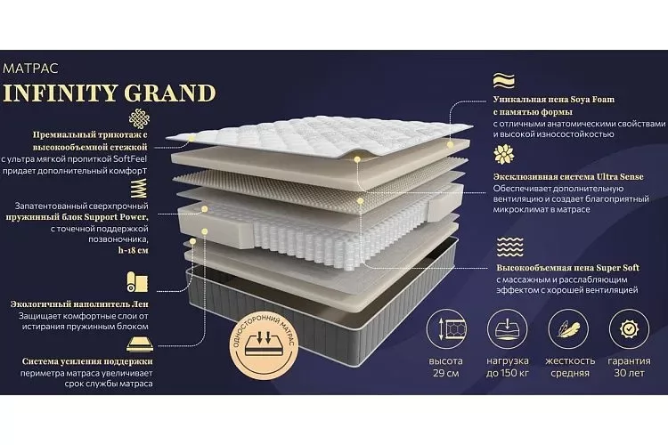 Матрас INFINITY GRAND 1800*2000мм (Пена/лен, ср.жесткий, h 29см)