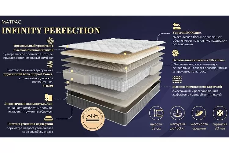 Матрас INFINITY PERFECTION 1800*2000мм (Эколатекс/пена/лен, ср. жесткий, h28см) в Кургане