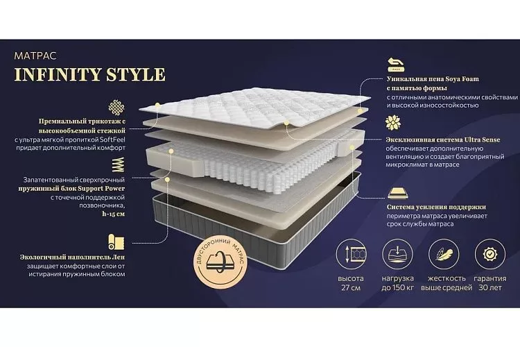 Матрас INFINITY STYLE 1200*2000мм (Пена/лен, жесткий, h 27см) в Кургане