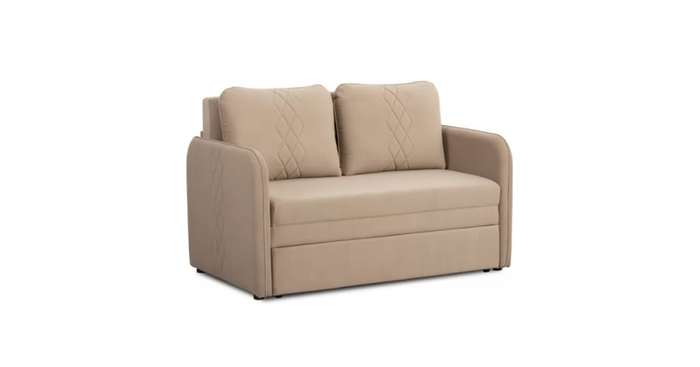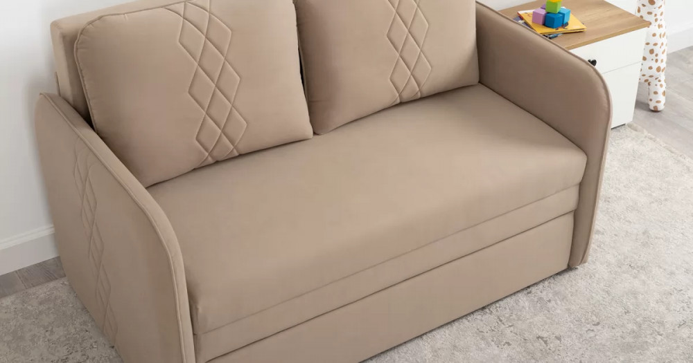 Стильный компактный диван для детской и гостиной. При своих скромных размерах он трансформируется в полноценное спальное место для детей и подростков. Лаконичный дизайн в виде декоративной отстрочки подчеркивает фактуру велюра, а небольшие размеры позволят разместить его в любом пространстве.