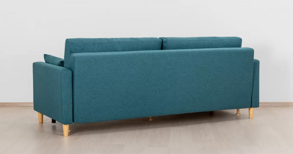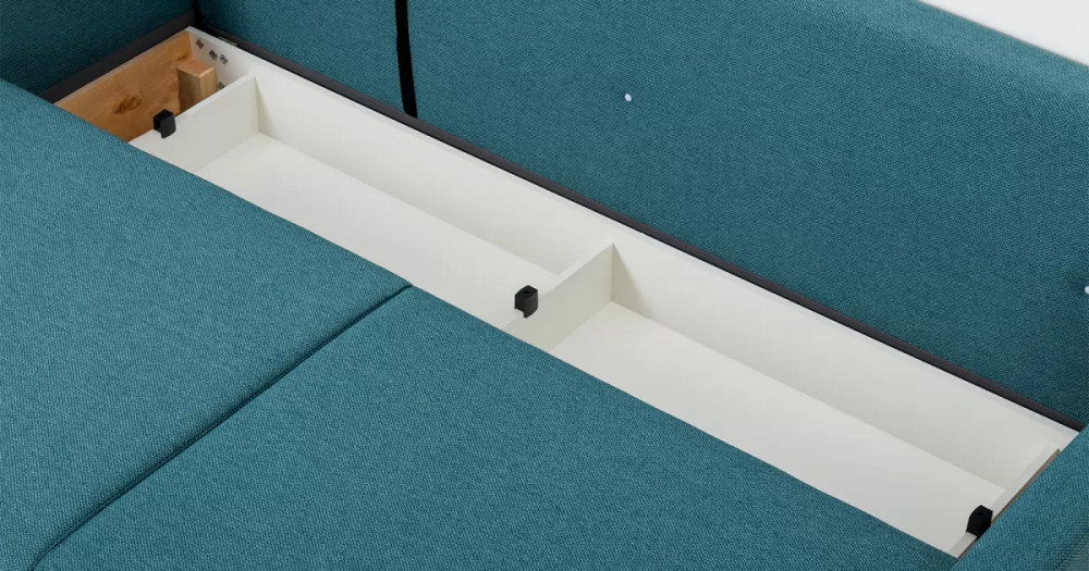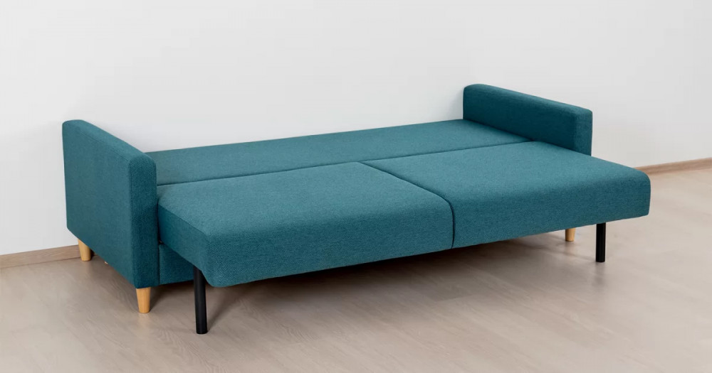 Дилан Диван-кровать арт. ТД 422Габаритысложенный (Д x Г х В, мм): 2170 x 960 x 880разложенный (Д x Г х В, мм): 2170 x 1370 x 620спальное место (Д x Ш, мм): 1910 x 1370высота посадки (мм): 460глубина сиденья (мм): 570высота спинки (мм): 420высота подлкотника от сиденья (мм): 160максимально допустимая нагрузка: 80 кг на одно посадочное место, 100 кг на одно спальное местоМеханизм трансформацииЕврокнижка с механизмом раскладки «тик-так»Бельевой ящикестьс перегородкой по центру (2 отделения)размер отделения (Д x Ш, мм):  786 x 688 x 120Материалыосновная ткань: Лаунж (шенилл) / Сага (рогожка)выполняется в тканях: Сага океан (темно-зеленый)каркас: фанера