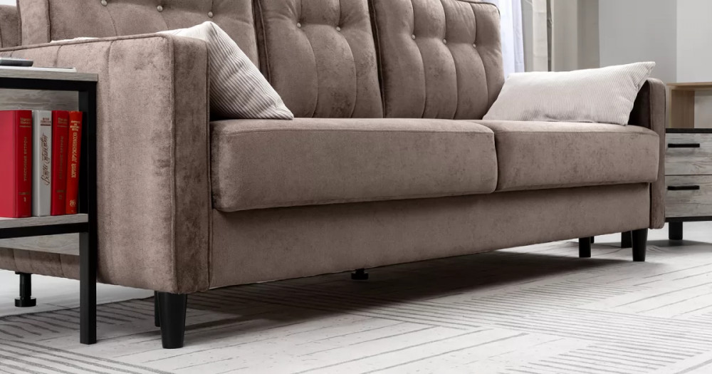 Подушки имеют трапециевидную форму, с утолщением к низу для комфорта посадки. Кант по всему периметру подушек, декоративные утяжки металлическими пуговицами, вертикальная стежка.