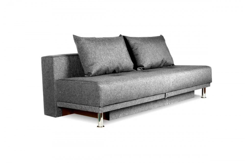 Трансформация дивана в спальное место происходит по принципу «еврокнижка»: сиденье выдвигается вперед, а подушка спинки опускается в образовавшееся пространство.