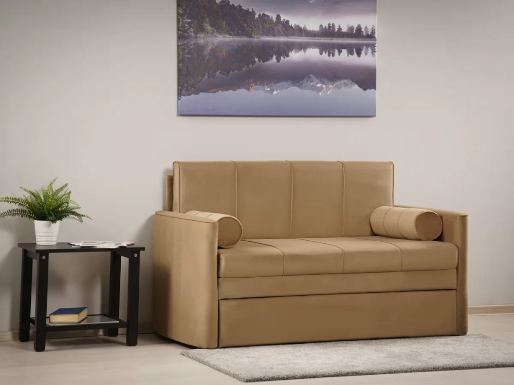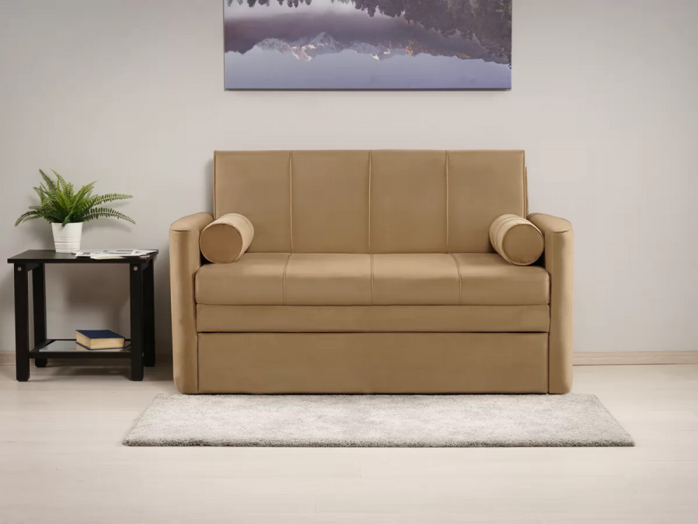 Габаритысложенный (Д x Г х В, мм): 1450 x 800 x 840разложенный (Д x Г х В, мм): 1450 x 2000 x 770спальное место (Д x Ш, мм): 1950 x 1200высота посадки (мм): 460глубина сиденья (мм): 650высота спинки (мм): 450высота подлокотника от сиденья (мм): 120максимально допустимая нагрузка: 80 кгМеханизм трансформацииВыкатной с гнутоклееными латамиБельевой ящикестьодно отделениеразмер отделения (Д x Ш, мм):  1100 x 628 x 100Варианты исполнения6 артикуловсочетание тканей только как на фотоМатериалыосновная ткань: Киви (велюр) / Макс (велюр)выполняется в тканях: Макс 210 (песочный)каркас: