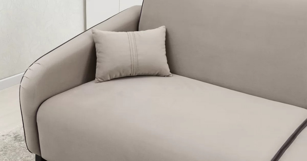 ДВПдекоративные подушки, шт: -2наполнитель подушек: -крошка ППУ и полиэфирное волокно «шарики»материал опор: металлцвет опор: черныйвысота опор (мм): 165ДекорСпинка и сиденье разделяются пополам двойным кантом по центру и одинарным по краям сидения, для придания одной единой формы. Подлокотники с изгибом на лицевой стороне и мягкими закругленным углом со складками, с выраженным контрастным ровным кантом по внешнему контуру изделия и изогнутой линией канта.Назначениев гостиную