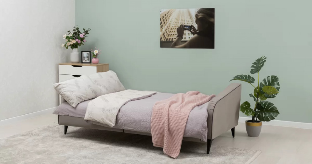 Стильный компактный диван-книжка для современных интерьеров. Дополнит гостиную, сэкономит место в гостевой, сделает уютным и функциональным кабинет или офис.