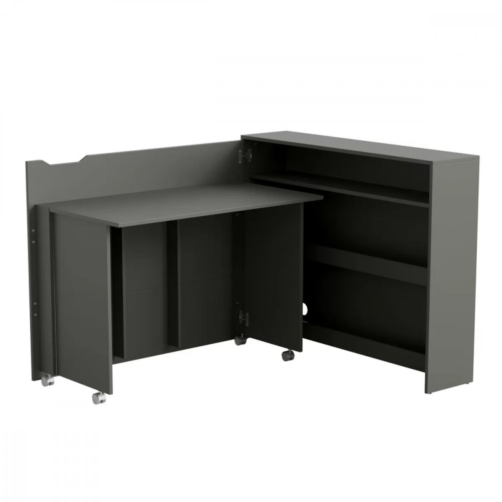 В сложенном состоянии он почти не занимает места, а в разложенном виде — это полноценное рабочее место с секциями для хранения документов, канцтоваров и прочих мелочей.