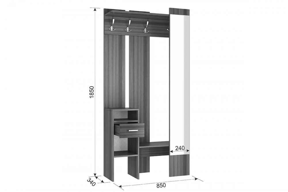 *Размеры (Ш*Г*В), мм:850х340х1850