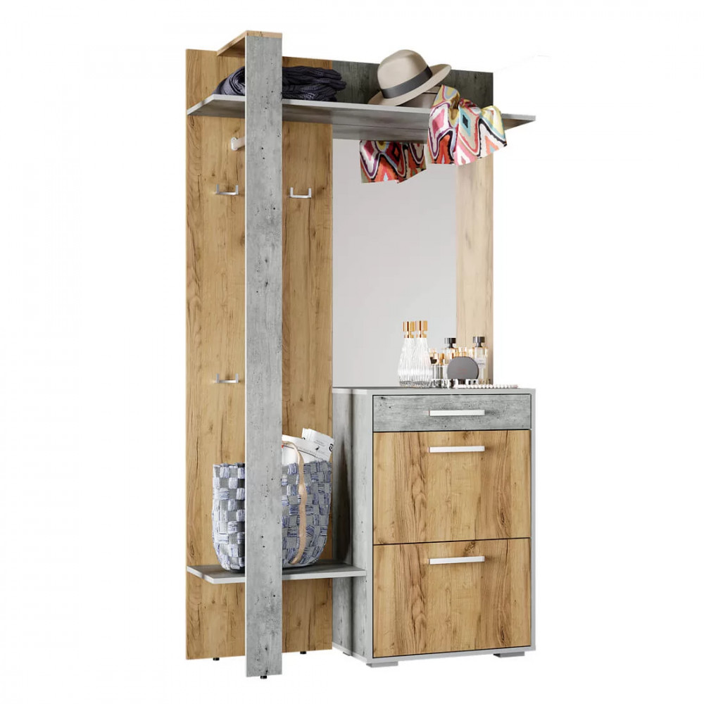 поправить прическу, головной убор или одежду можно благодаря навесному зеркалу, которое, к тому же, визуально расширяет пространство.