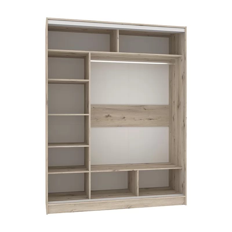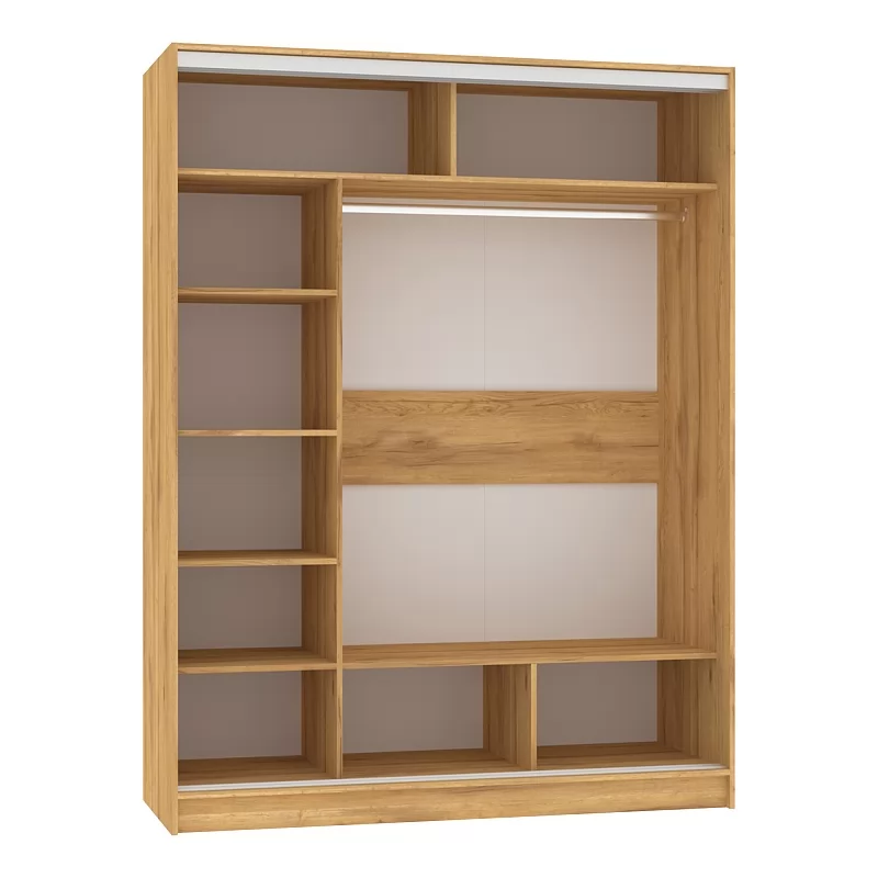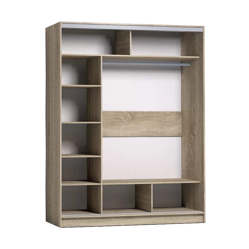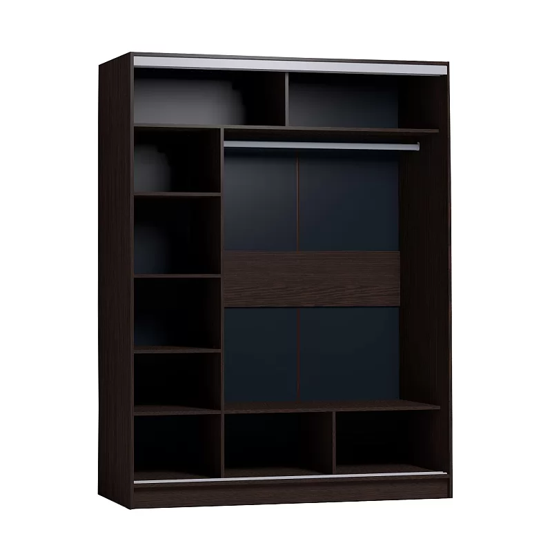 В шкафу-купе шириной 160 см найдется место для гардероба всей семьи. Разместите в нем бельё, верхнюю одежду и аксессуары. Продуманное внутреннее наполнение шкафа состоит из стеллажа для белья, четырех больших ниш внизу и вверху, а также стационарной штанги длиной больше метра. В изготовлении шкафов-купе STRIKE использована прочная стальная система треков «Найди» цвета Металлик. Двери шкафов дополнены ручками из массива и шлегелем, который смягчает удары дверей при закрывании, а также защищают вещи от попадания пыли. Благодаря скрытым полкодержателям полки жестко крепятся на необходимой высоте.