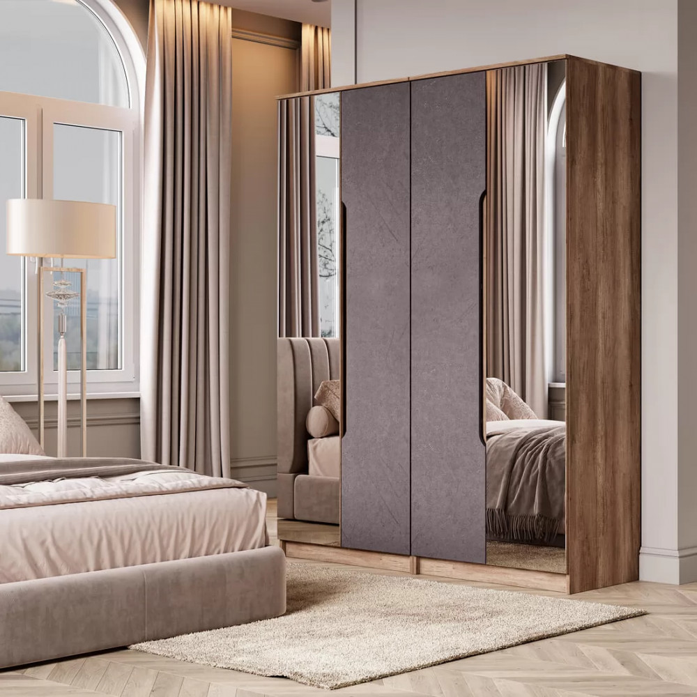 -одна створка с оригинальной интегрированной ручкой выполнена в цвете «лофт графит», а вторая – полностью зеркальная.