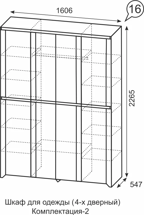 Размеры (Д×Ш×В), мм: 547×1606×2265