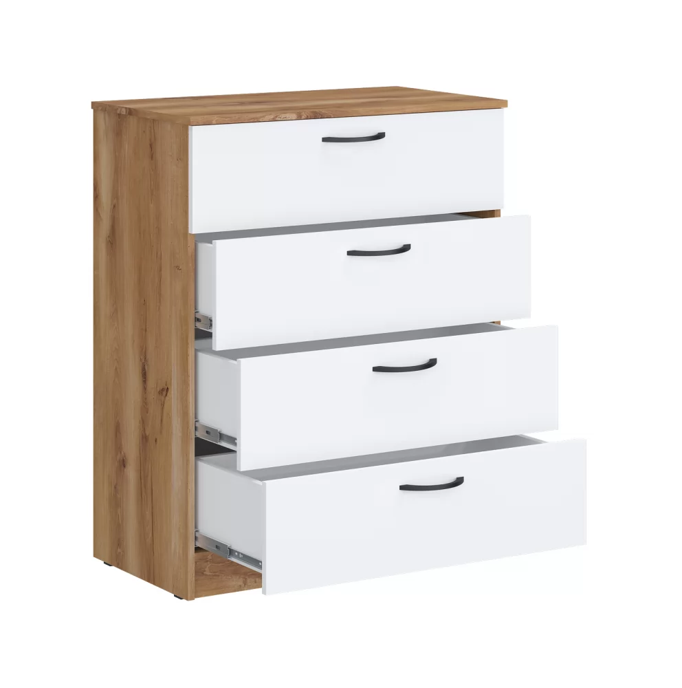 Классический комод - красивый и практичный. Выкатные ящики работают на шариковых направляющих полного выдвижения - тихие, надёжные, позволяющие увидеть и использовать всё пространство ящика. Сеул - смелая претенциозная коллекция для яркого и неповторимого дизайна вашего дома. Контрастное сочетание белоснежного цвета и богатого древесного оттенка делает интерьер современным, стильным и свежим.