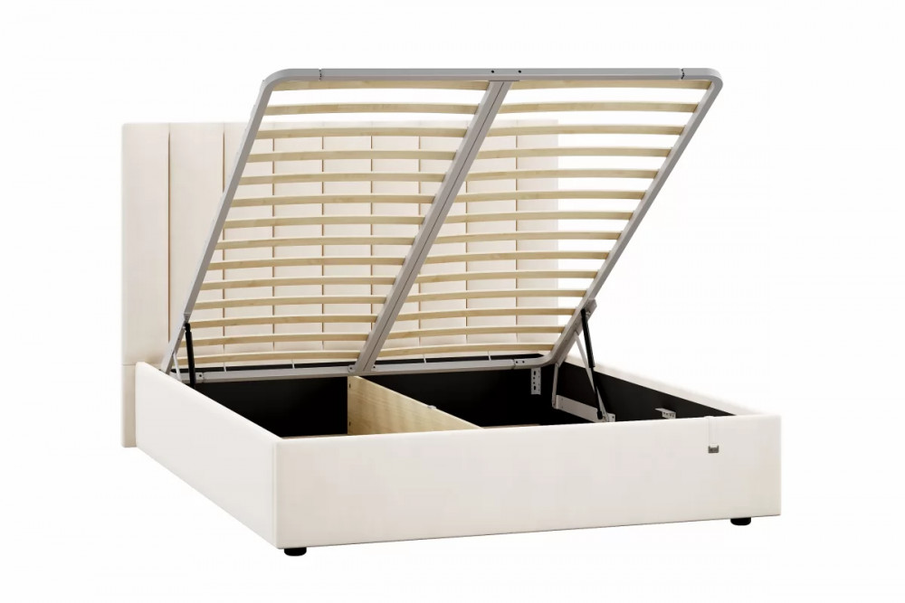 Подъемный механизм легок в управлении, а вместительный короб внутри кровати подойдет для хранения подушек, белья и других вещей. Мягкие тканевые ручки облегчают процесс подъема основания.