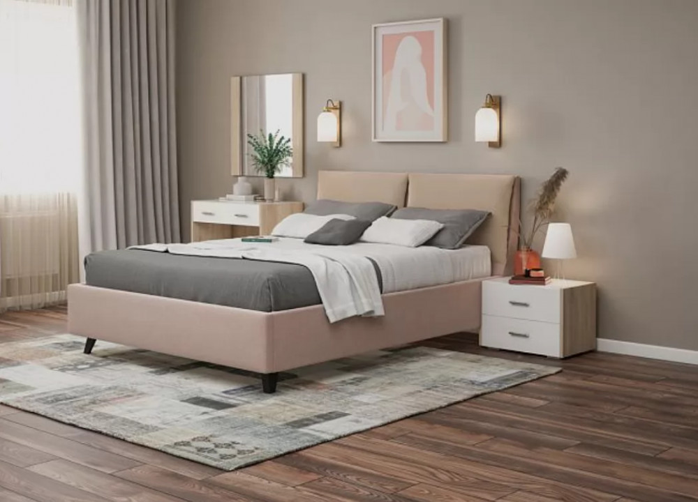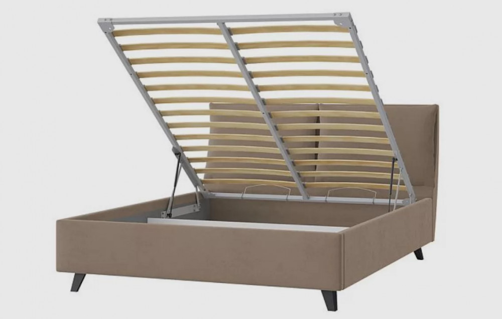 Кровать комплектуется ортопедическим основанием "Профи" с подъёмным механизмом и бельевым ящиком.
