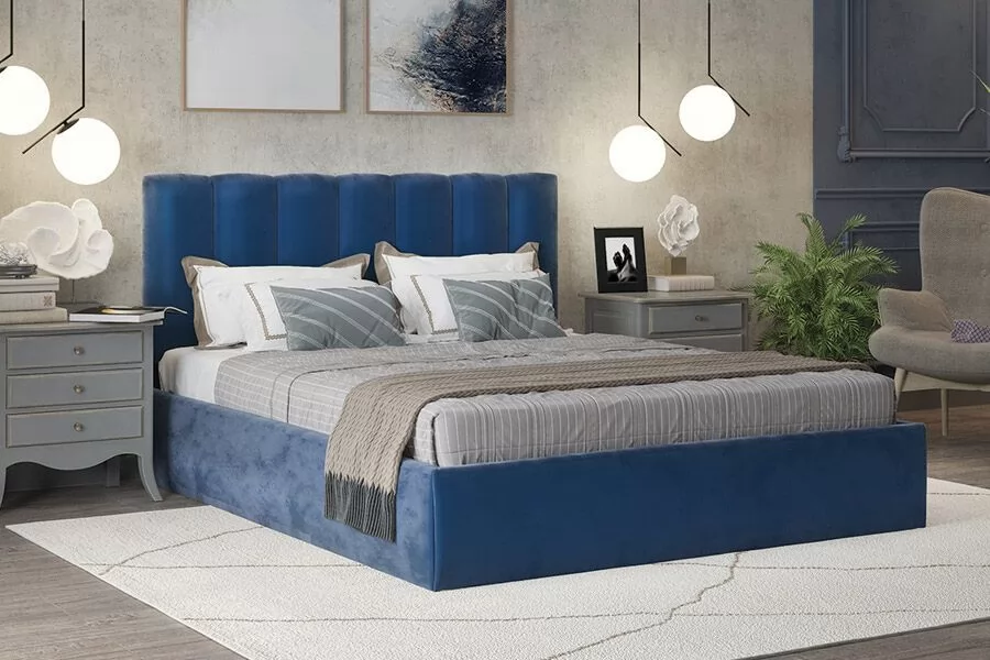 Кровать Элен 1200*2000 мм, велюр NEO 27, синий в Кургане