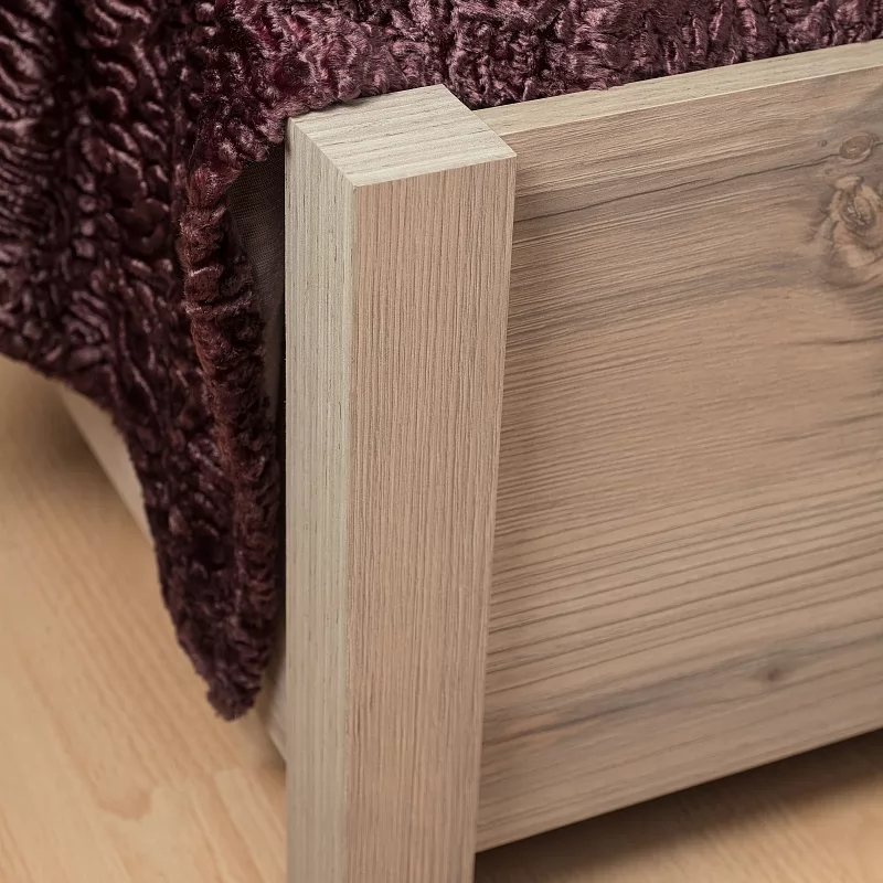 Двуспальная кровать NATURE 306 Кровать Люкс (1800) станет стильным дополнением для вашей спальни. Спокойный приятный древесный декор поможет создать атмосферу настоящего уюта и комфорта в комнате. А контрастные черные вставки из ЛДСП и декоративные золотые нити на черной экокоже сделают изголовье кровати интересным и современным. Экокожа очень легко чистится и не выгорает под воздействием солнечных лучей.