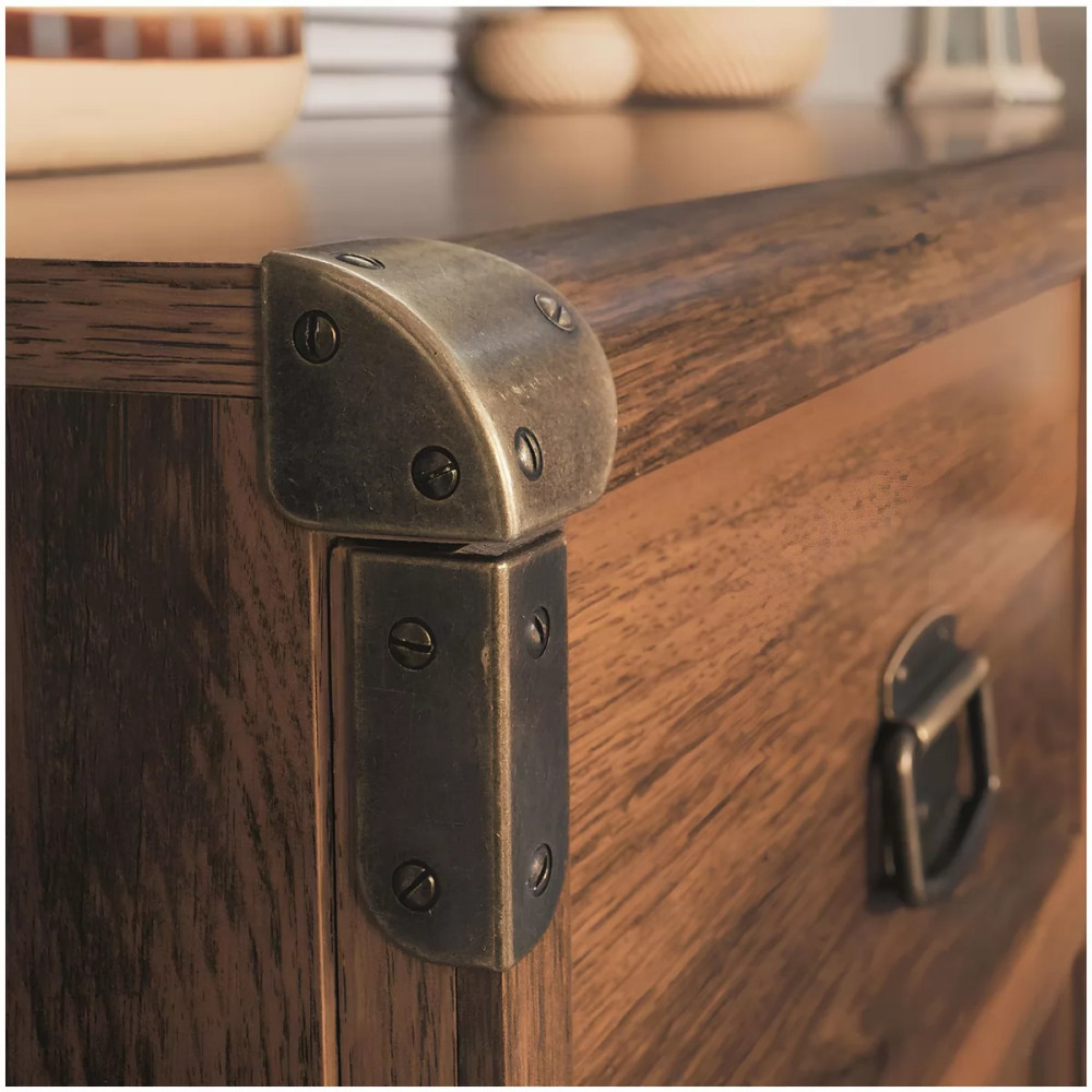 Особое внимание привлекает качественная отделка углов кровати металлическими уголками, которые подчеркивают ее прочность и долговечность. Изготовленная из высококлассных материалов, таких как ЛДСП класса E0.5, эта мебель отличается экологической безопасностью и долговечностью.