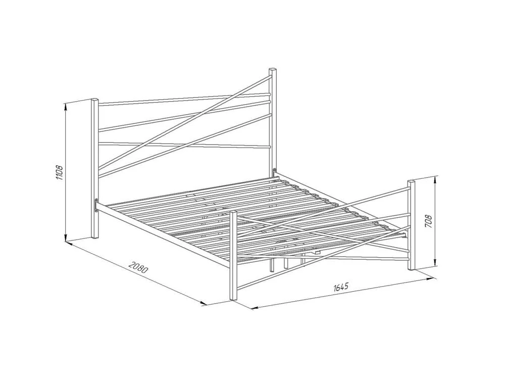 Материал: основная труба лежака — 50х10 мм, стойки боковины (труба) — 40х40 мм. Размер спального места, см: 160х200. Основание под матрас: деревянные ламели. Допустимая нагрузка на спальное место, кг: 180. Высота: 111 см Ширина: 208 см Глубина: 165 см Вес упаковки: 36 кг Объем упаковки: 0.222 м3