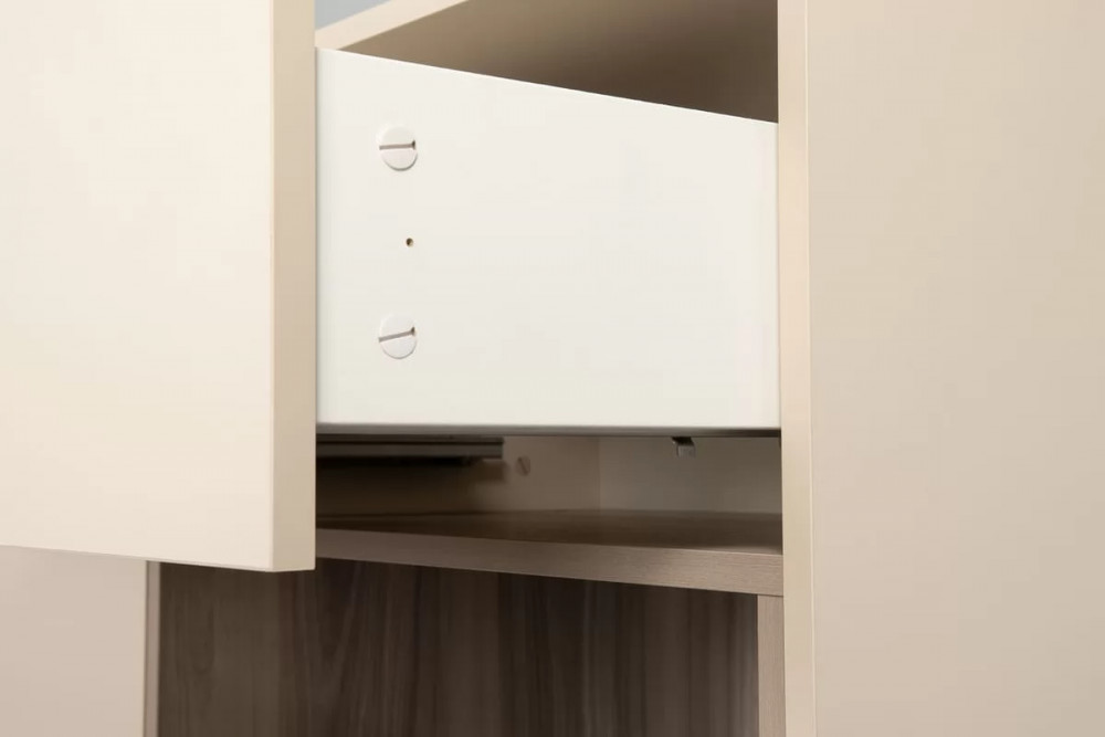Благодаря нейтральному светлому оттенку и универсальности декора модули можно разместить в спальне, гостиной, прихожей.