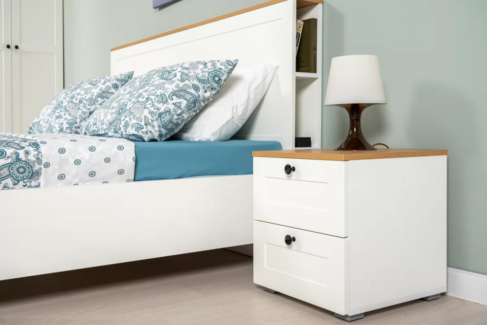 Доступна в двух цветовых решениях – белый/графит в сочетании с теплым древесным декором.