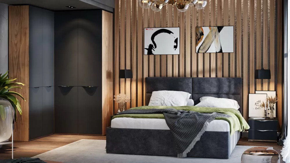 Спальный гарнитур «Глосс» №9 Яблоня Беллуно, Стекло Графит матовый в Кургане