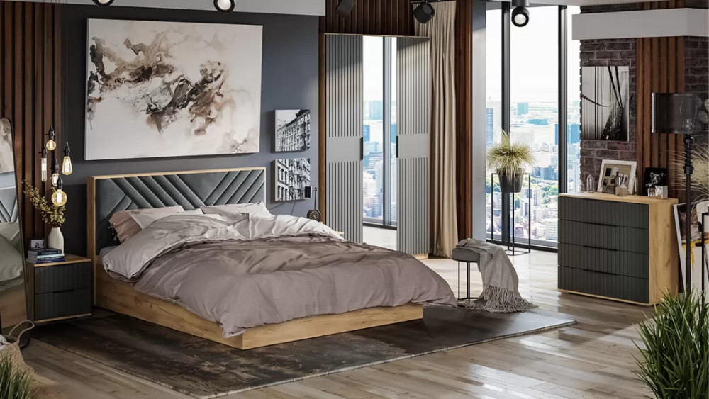 Спальный гарнитур «Хилтон» №1 Дуб Крафт золотой, Графит матовый в Кургане