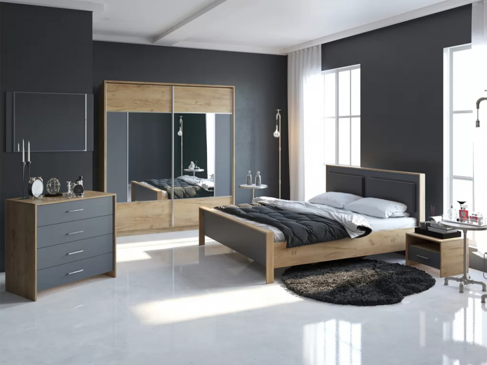 Спальный гарнитур Либерти Дуб крафт золотой/Антрацит в Кургане