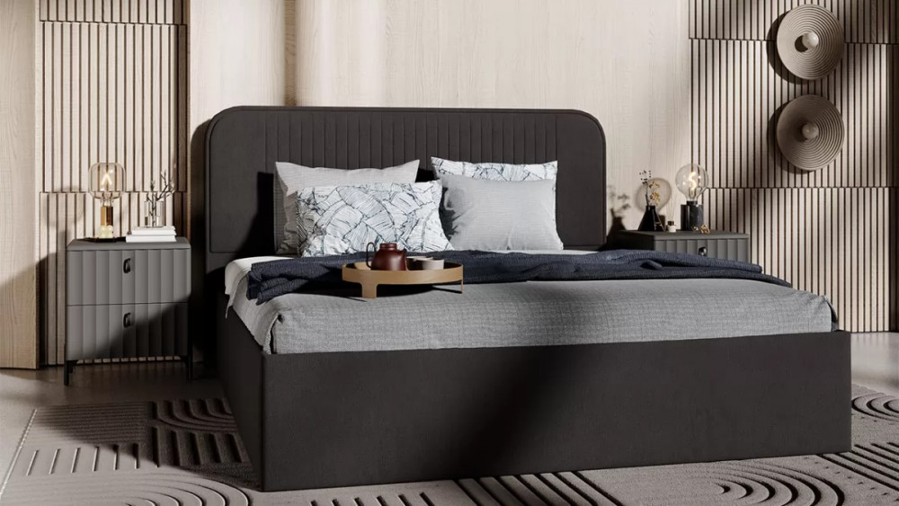 Спальный гарнитур «Тиффани» стандартный Базальт, Грей софт, Велюр Графит в Кургане