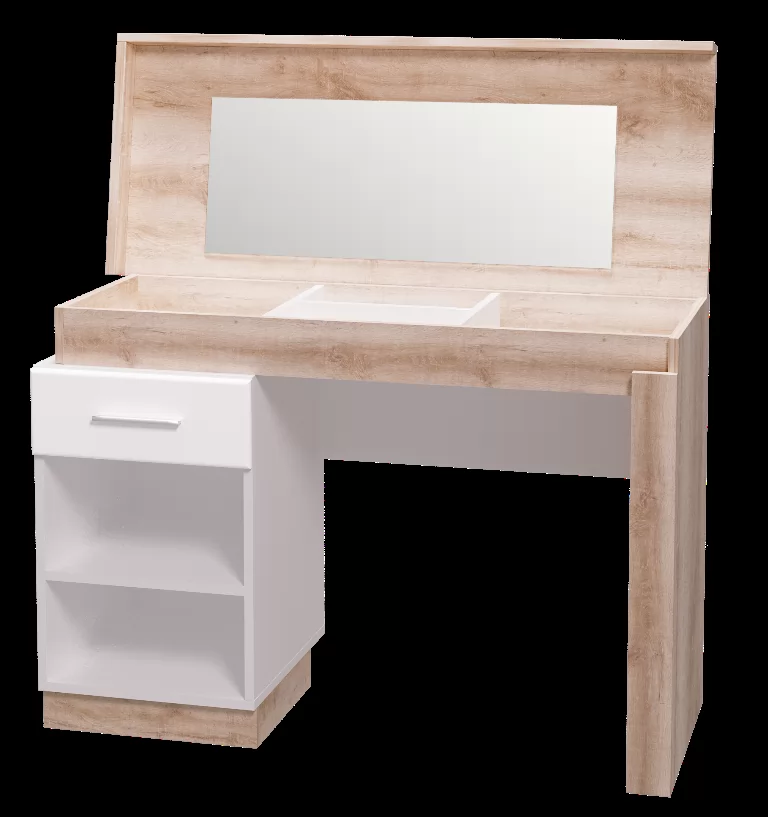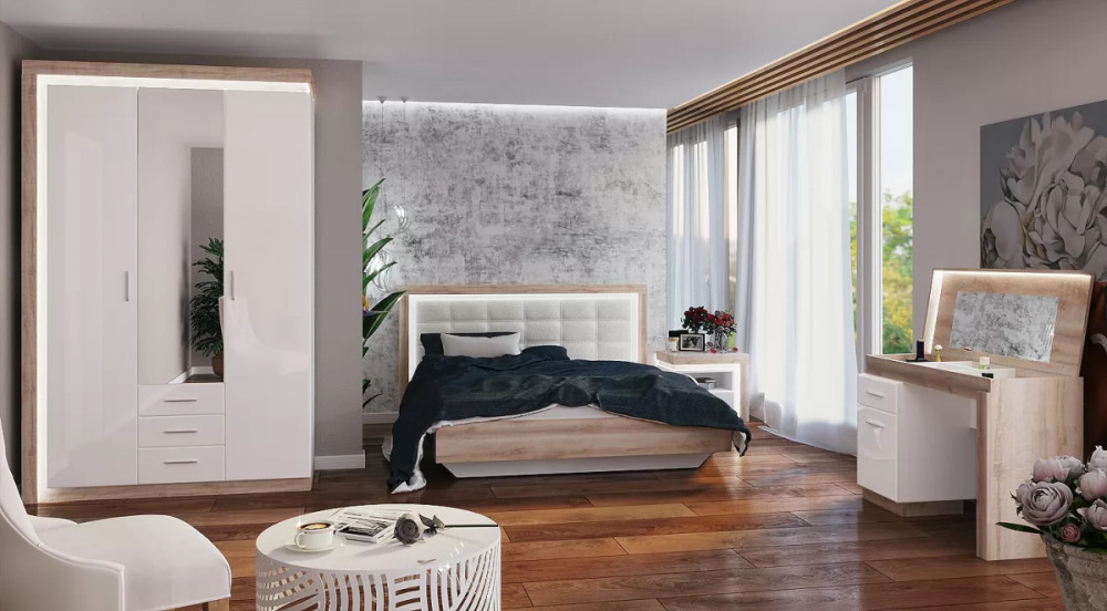 Интересное и поистине уникальное оформление предлагает коллекция Люмен, в которой сочетается несколько стилей. В мебели встречаются вставки с декорацией под грубую обработку древесины, которые креативно и гармонично смотрятся на основном аккуратном, более светлом фоне. Дополнительный эффект обеспечивает легкая асимметрия. В коллекции можно выбрать туалетный стол, кровать, тумбу, зеркала.