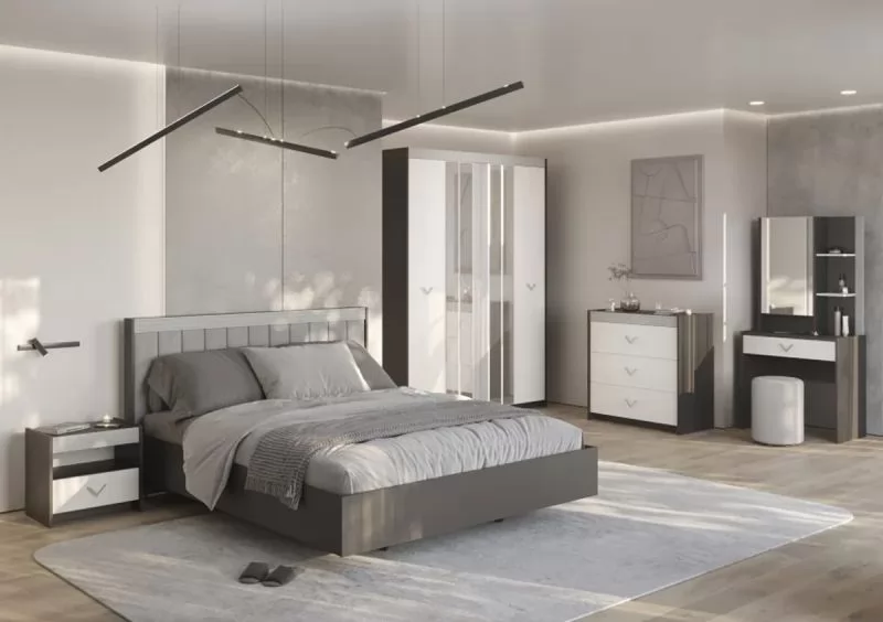СТЕФАНИ Спальня №1, ЛДСП Графит-МДФ Серый софт/ЛДСП Рамух белый в Кургане